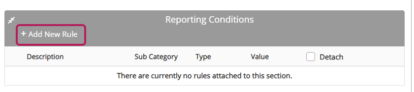 Step 3: Scroll down to the Reporting Conditions section and click Add New Rule to Reporting Condition Section.