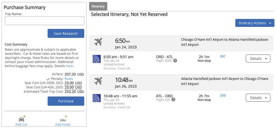 Paid seat costs will be included in the Cost Summary.